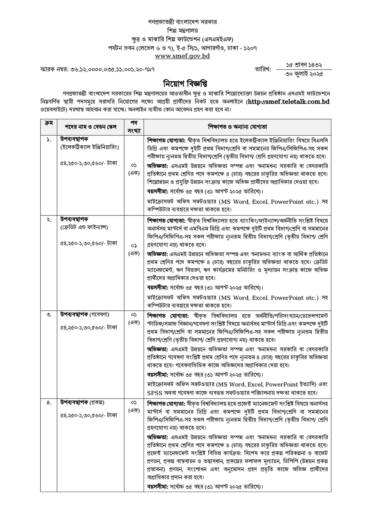ক্ষুদ্র ও মাঝারি শিল্প ফাউন্ডেশন নিয়োগ বিজ্ঞপ্তি ২০২৫ SMEF Job Circular 2025
