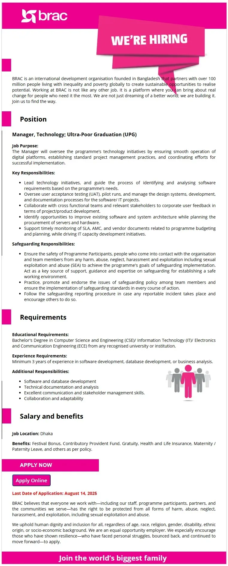 ব্র্যাক এনজিও নিয়োগ বিজ্ঞপ্তি ২০২৫