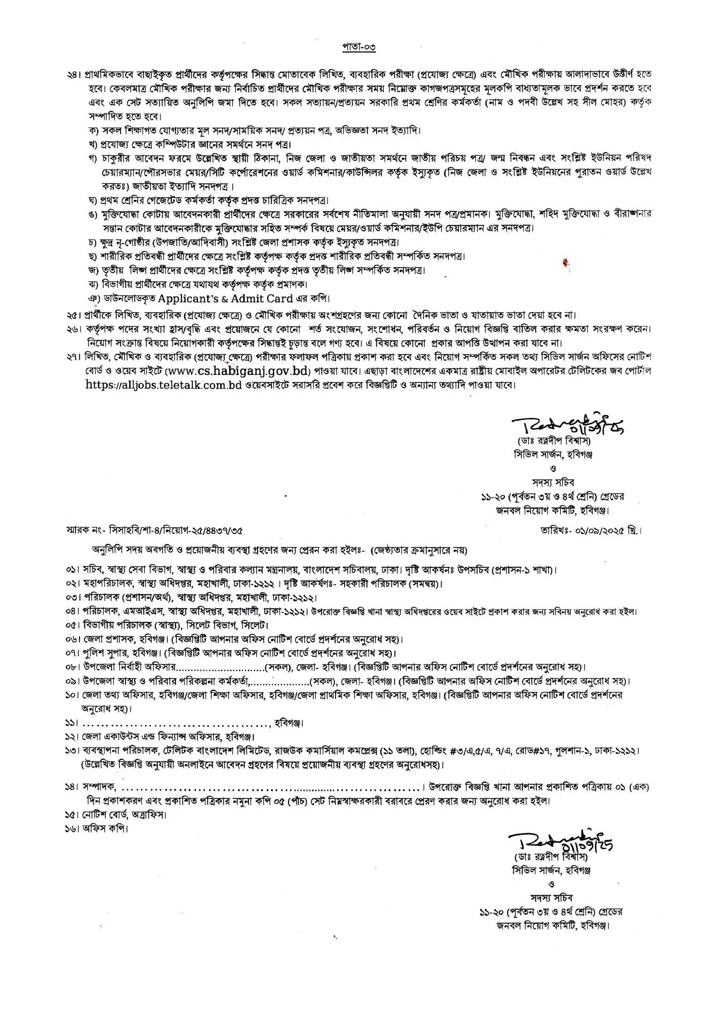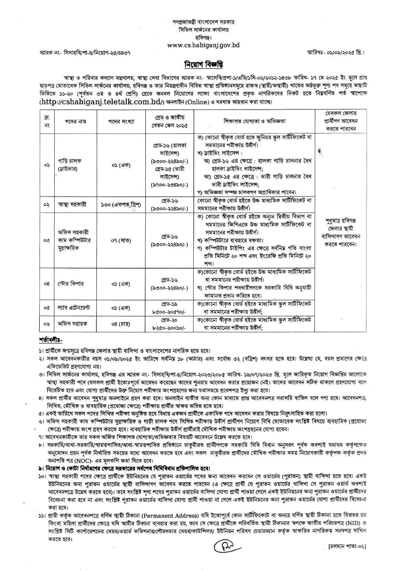 সিভিল সার্জনের কার্যালয় হবিগঞ্জ নিয়োগ বিজ্ঞপ্তি ২০২৫