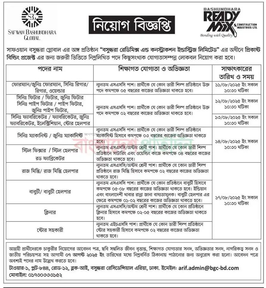 Bashundhara job circular 2025 has created a great career opportunity for unemployed people who are interested in group of company jobs in Bangladesh. If you are interested to join Group of Company / Private Jobs in 2025, then Bashundhara Group Job Circular 2025 is published for you. Undoubtedly, this is a very good job opportunity for group of company job seekers. Let’s know more details according to Bashundhara Group job circular 2025.