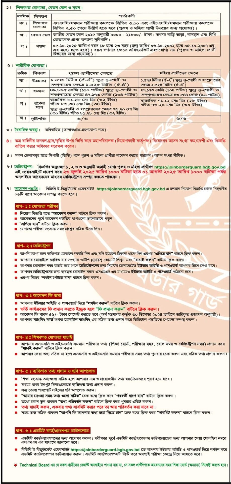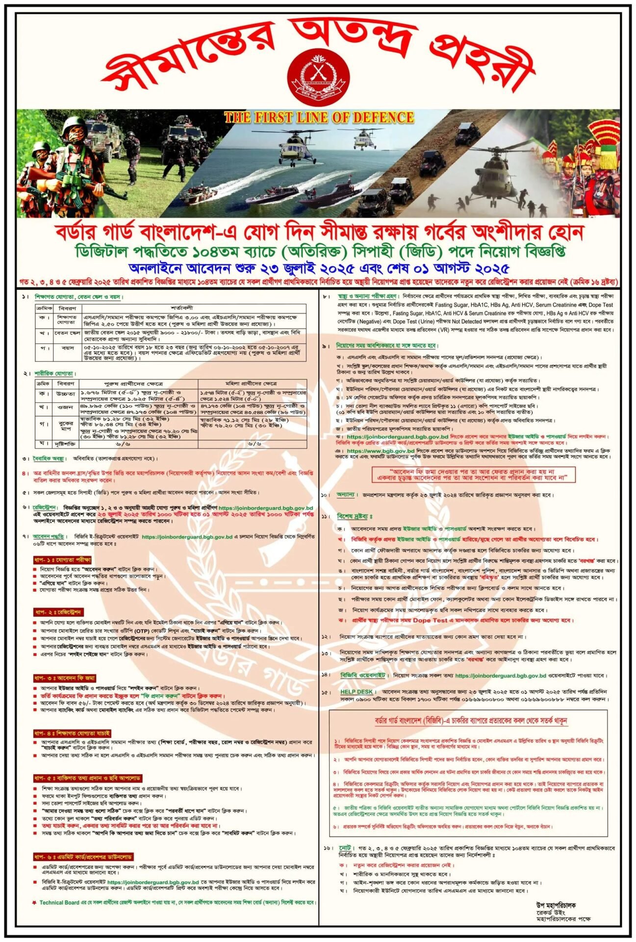 Bangladesh BGB job circular 2025 has been published. Border Guard Bangladesh has released the BGB Civil job circular 2025 and 104th Batch Sipahi job circular 2025 pdf and notice in their official website www.bgb.gov.bd and daily newspapers. Interested eligible male and female candidates can submit job application online through joinborderguard.bgb.gov.bd website.