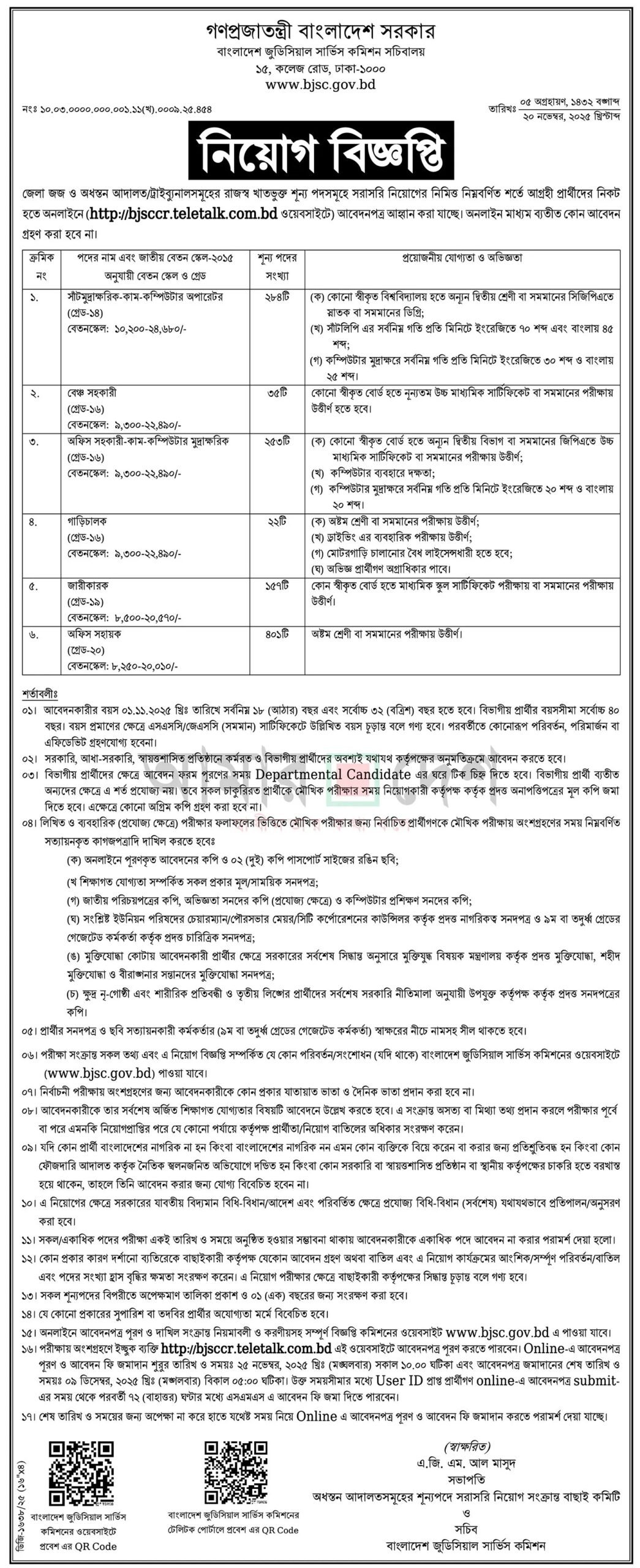 Bangladesh Judicial Service Commission BJSC Job Circular 2025 was officially issued on 20 November 2025.