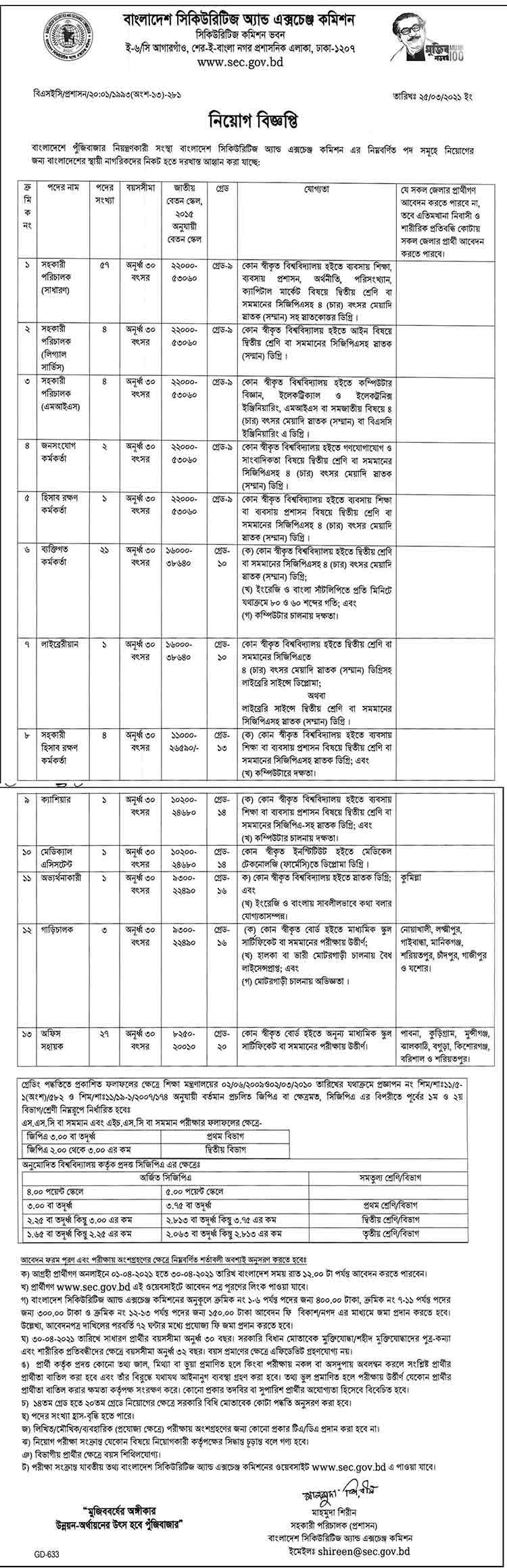 BSEC Job Circular 2021 has been published. Bangladesh Securities and Exchange Commission (BSEC) Job Circular 2021, https://erecruitment.sec.gov.bd/, https://www.sec.gov.bd/, www.sec.gov.bd job circular 2021, Job Circular of SEC 2021, Bangladesh Securities and Exchange Commission Job Circular 2021, BSEC Job Circular 2021, Securities Exchange Commission Job Circular 2021, SEC Assistant Director Job Circular 2021, SEC Personal Officer Job Circular 2021, SEC PO Job Circular 2021, SEC Office Assistant Job Circular 2021, SEC MLSS Job Circular 2021, SEC AD Job Circular 2021, SEC Cashier Job Circular 2021 are searches option to get all information of SEC Job Circular 2021.
