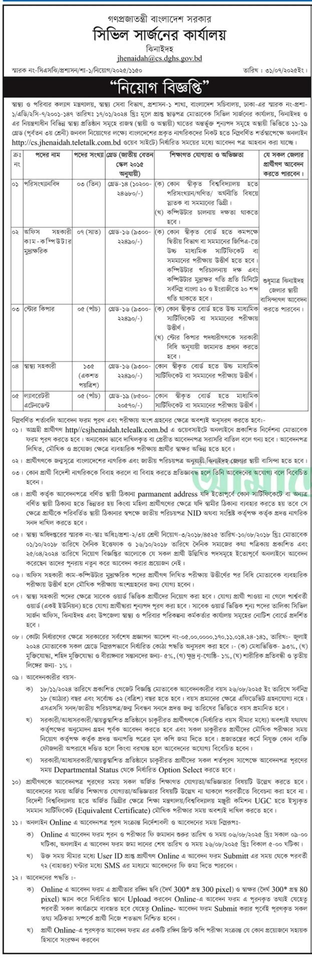 Civil Surgeon Office Jhenaidah has invited applications from genuine Bangladeshi citizens for the www.cs.jhenaidah.gov.bd Job Circular 2025. If you’ve passed SSC or equivalent pass, HSC or equivalent pass and Graduate or equivalent pass, the CS Jhenaidah job circular 2025 is published for you. As per our experience of publishing government job circulars, CS Jhenaidah job circular 2025 is one of the best ongoing govt job circular.
