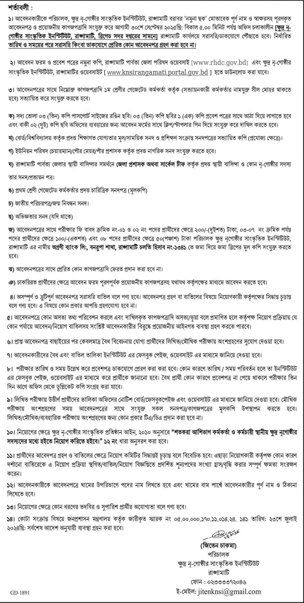 Cultural Institute for Small Ethnic KNSI Rangamati Job Circular 2025
