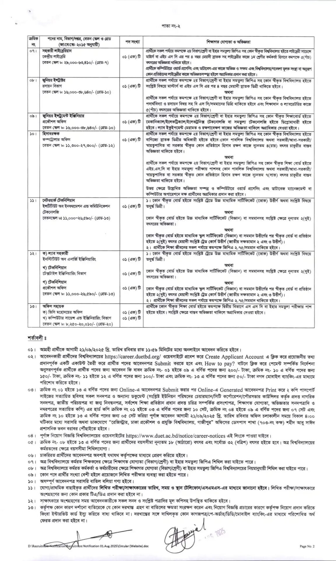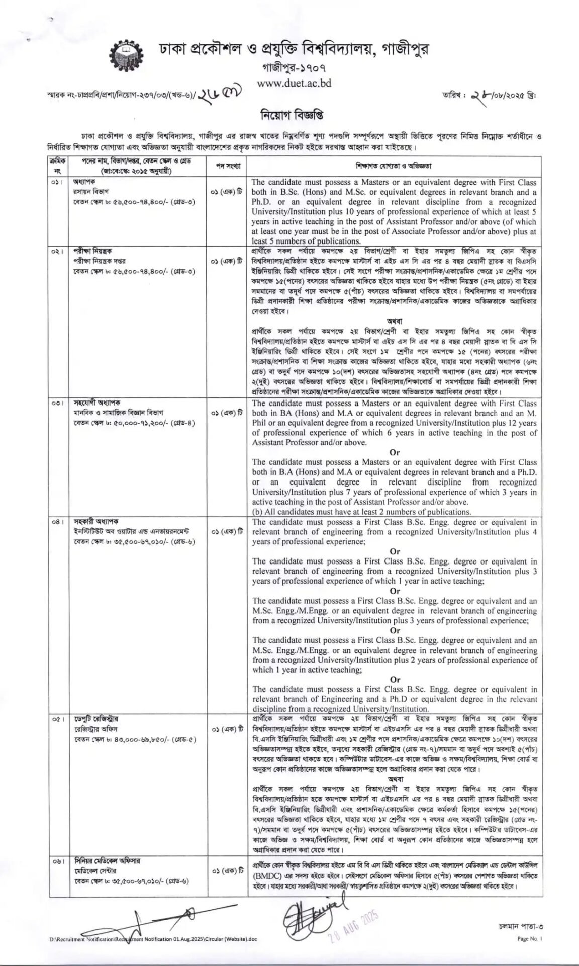 DUET Job Circular 2025 – Dhaka University of Engineering & Technology