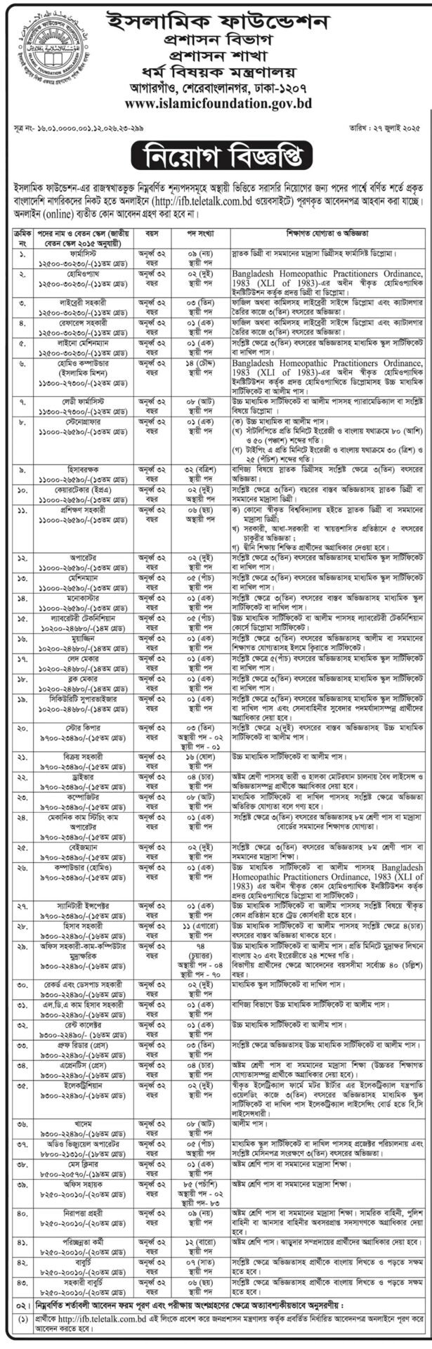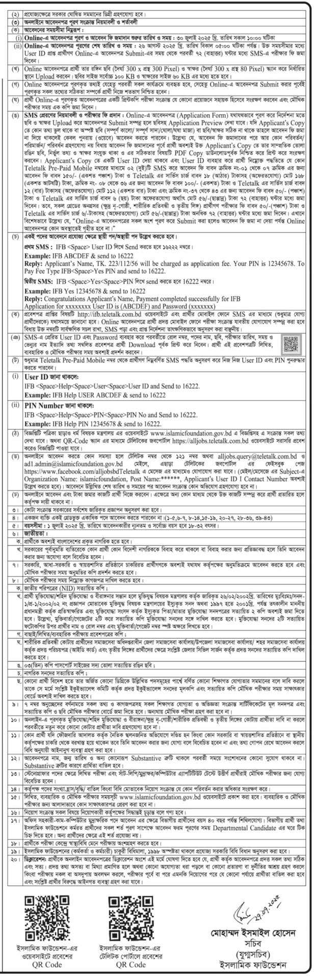 Islamic Foundation job circular 2025 has been published. Islamic Foundation Bangladesh has released the job circular PDF and notice on its official website www.islamicfoundation.gov.bd and in daily newspapers. Interested eligible male and female candidates can submit job application online through the ifb.teletalk.com.bd website.