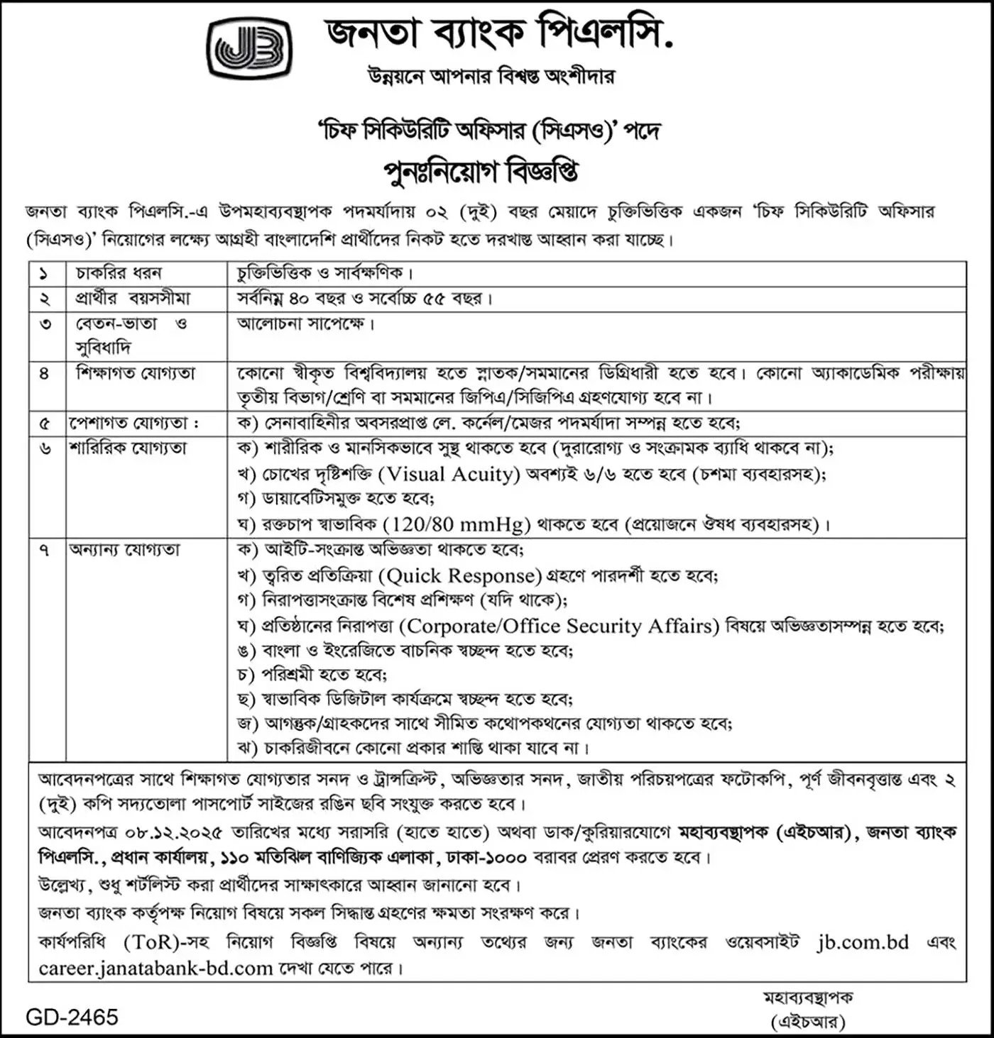Janata Bank Limited Job Circular 2025