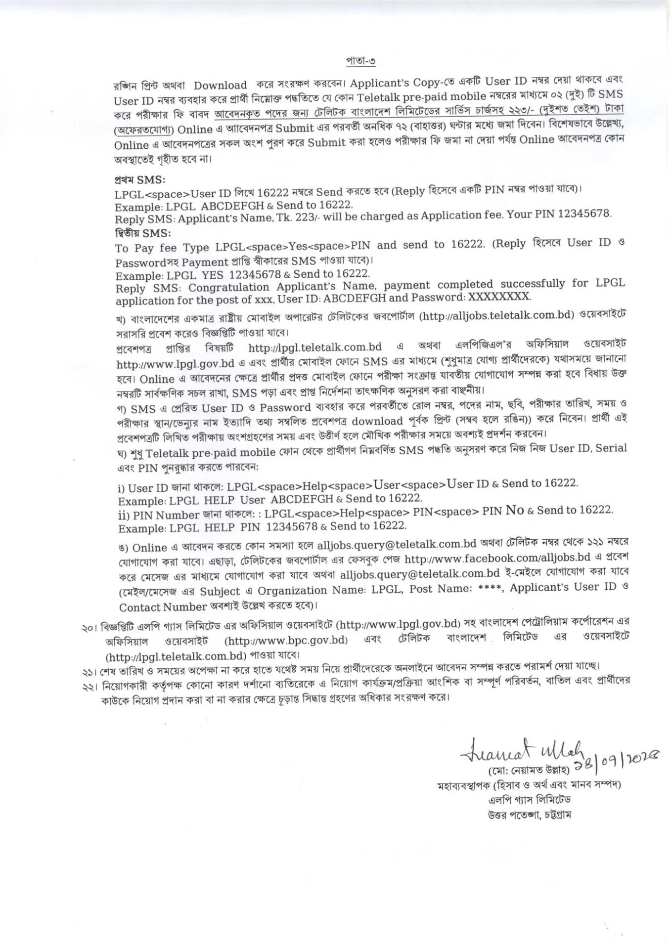 এলপি গ্যাস লিমিটেড নিয়োগ ২০২৫ এ আবেদন শুধুমাত্র অনলাইনে গ্রহণ করা হবে। এলপি গ্যাস লিমিটেড চাকরির অনলাইন আবেদন চলবে নির্দিষ্ট সময় ব্যাপী। এই সময়ের মধ্যে https://lpgl.teletalk.com.bd প্রবেশ করে সকল শিক্ষাগত সার্টিফিকেটের তথ্য, জাতীয় পরিচয়পত্রের তথ্য, রঙিন ছবি, (Passport Size Photo) স্বাক্ষরের ছবি দিয়ে আবেদন করতে হবে।