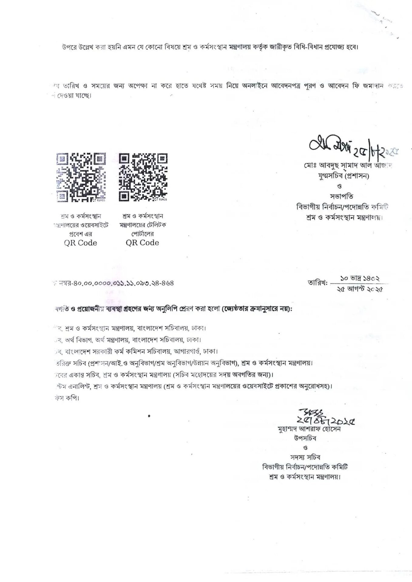 As per the Shrom O Kormosongsthan Montronaloy job circular 2025 notice, candidates will go through a selection process including written, practical and viva/oral examinations. In addition, their relevant documents will be verified, and they will have to obtain the required police clearance for final selection.
