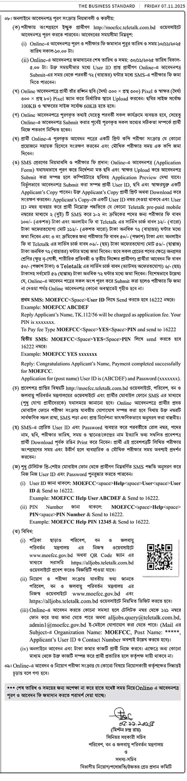 As per the MOEF Teletalk job circular 2025 notice, candidates will go through a selection process including written, practical and viva/oral examinations. In addition, their relevant documents will be verified, and they will have to obtain the required police clearance for final selection.