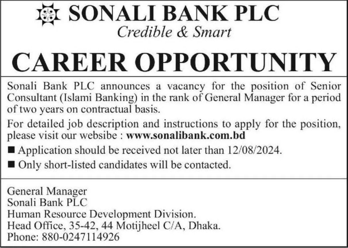 Sonali Bank Limited is one of the trusted and well reputed bank in Bangladesh. The Sonali Bank Limited swift code is . Sonali Bank head office is located at 35-42,44 Motijheel C/A Dhaka -1000 Bangladesh. Recently they are looking for new manpower. So, Sonali Bank Ltd has published this new job circular in 2025 to add the right qualified job candidates.