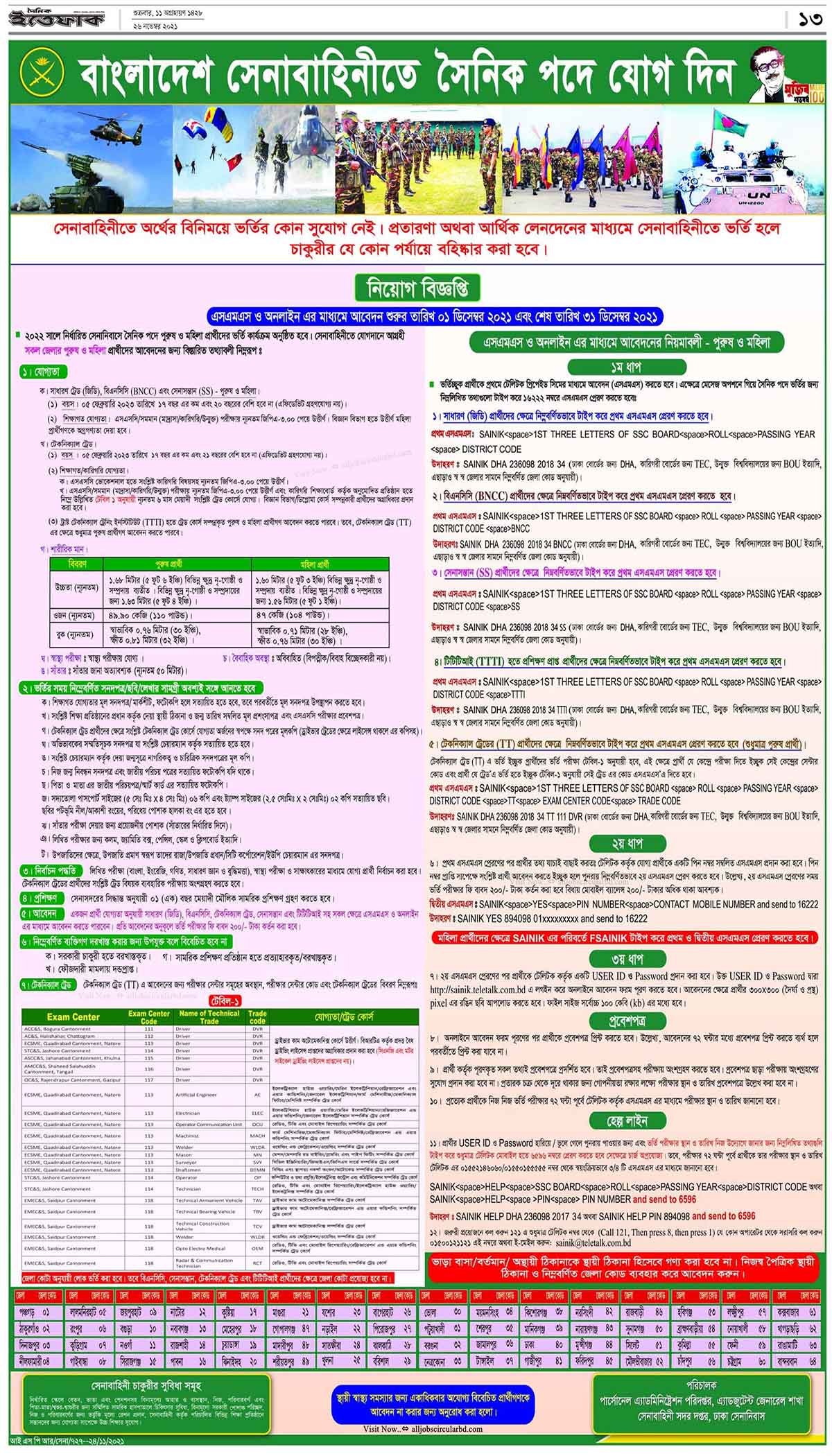For your information, Bangladesh Army Sainik Solider Job Circular 2021 application Deadline is 31 December 2021, and the application Starts on 01 December 2021.