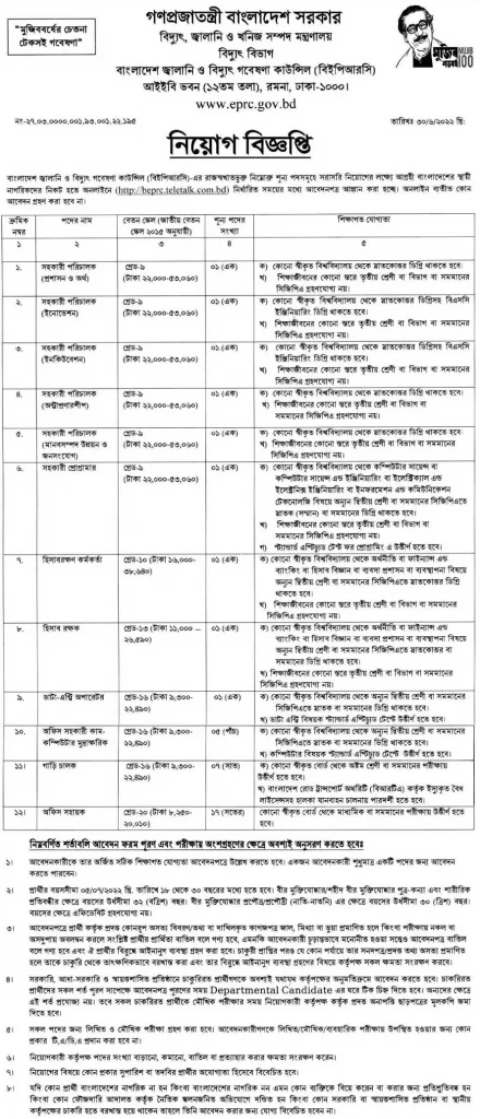 The Bangladesh Energy and Power Research Council have published the BEPRC job circular 2022 PDF on www.eprc.gov.bd and beprc.teletalk.com.bd. For your convenience, we have downloaded the PDF file and attached the BEPRC job circular 2022 PDF download link here.