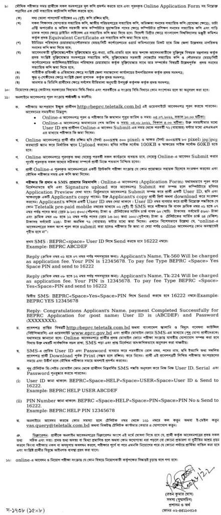 Now the question is how to apply. The BEPRC Job application process is online base. So, submit your online application through www.beprc.teletalk.com.bd.