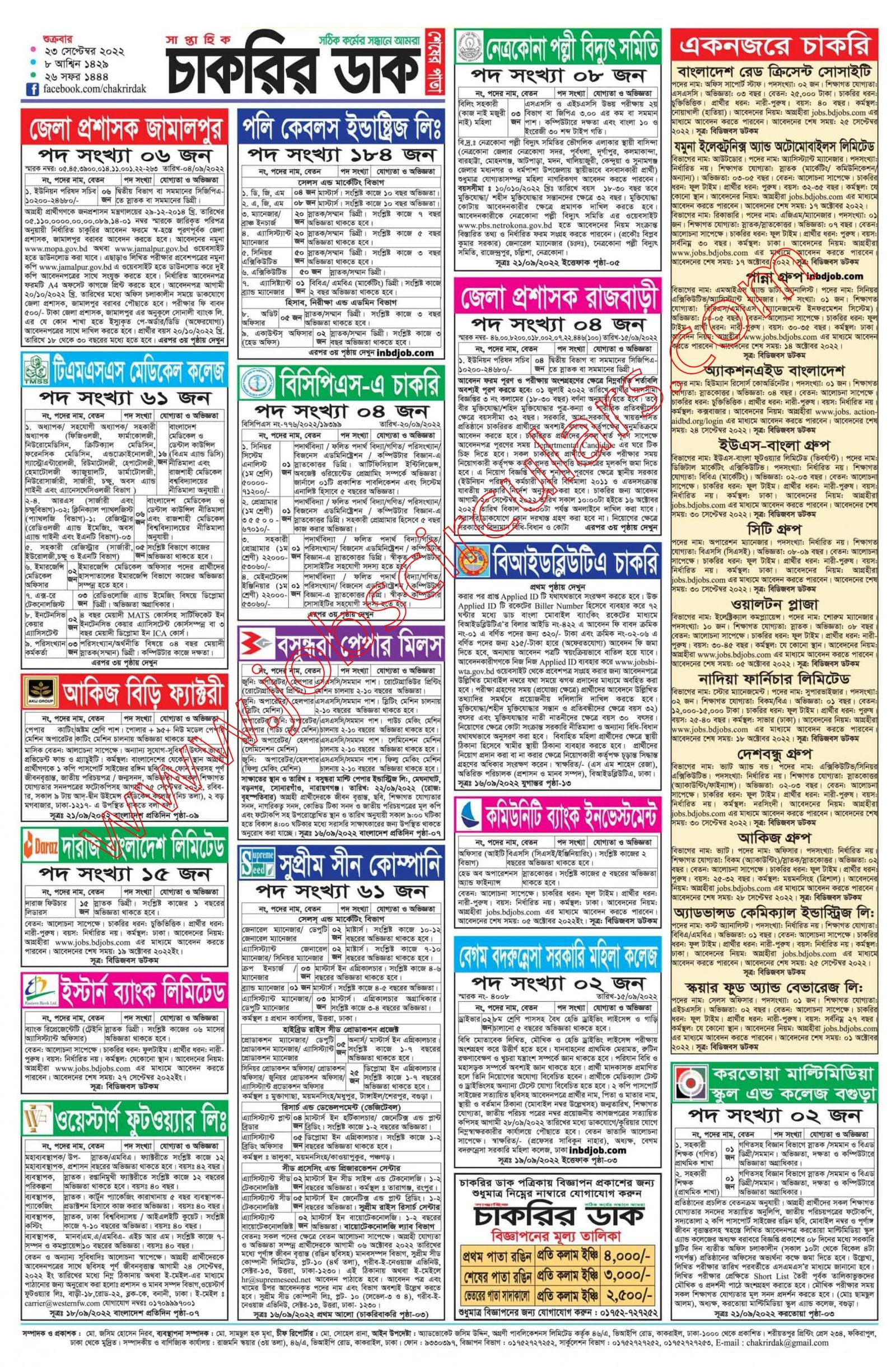 Saptahik Chakrir Dak 23 September 2022. Weekly Job Newspaper 23 September 2022. Weekly Jobs Newspaper and Saptahik Chakrir Khobor 23 September published today. The Weekly Jobs Newspaper 23 September is available on our BD Jobs Circulars website. The Chakrir Dak, Saptahik Chakrir Khobor, Saptahik Chakrir Bazar, Saptahik Chakrir Songbad is here. These jobs newspaper is a very popular weekly job newspaper and Saptahik Chakrir Patrika. Saptahik Chakrir Khobor newspaper and Weekly Job Newspaper can be downloaded from our site. Saptahik Chakrir Khobor 23 September 2022 available on our BD Jobs Circular website jobs Circulars.
