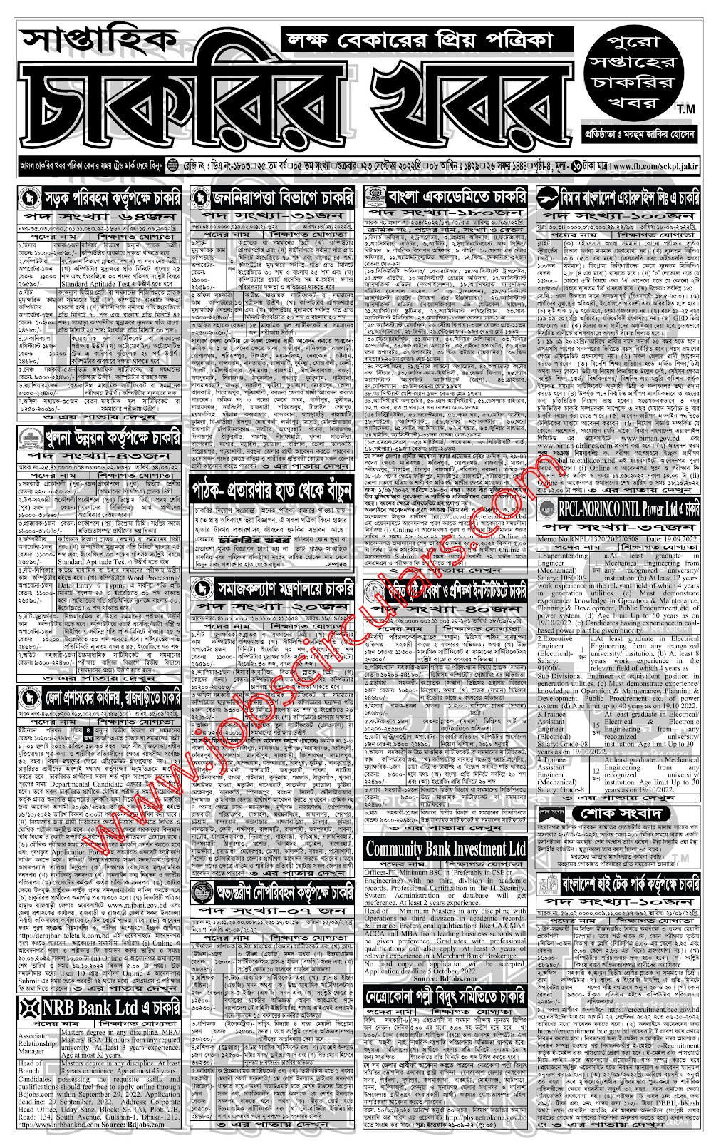 Chakrir Khobor Newspaper 23 September 2022. Weekly Job Newspaper and Saptahik Chakrir Khobor Newspaper 23 September published today. Weekly Jobs Newspaper 23 September is available on our BD Govt Job website. Chakrir Dak, Saptahik Chakrir Khobor, Saptahik Chakrir Bazar, সাপ্তাহিক চাকরির খবর পত্রিকা, Saptahik Chakrir Songbad is here. These jobs newspaper is a very popular weekly job newspaper and Saptahik Chakrir Patrika. Saptahik Chakrir Khobor newspaper and Weekly Job Newspaper can be downloaded from our site. Saptahik Chakrir Khobor 23 September 2022 available on our BD Jobs Circular website Jobs Circulars.